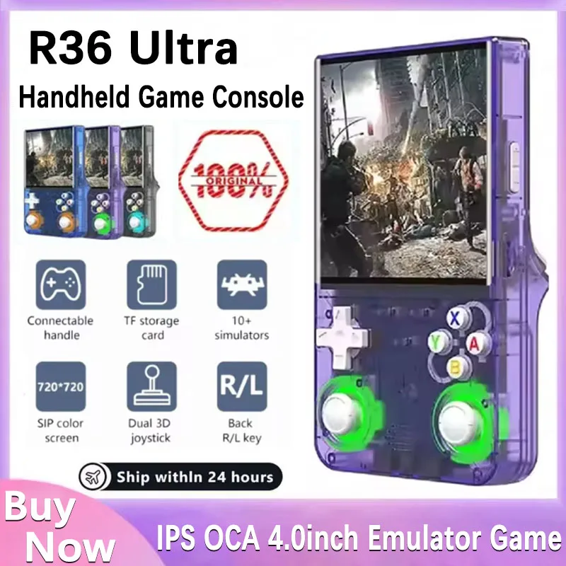2025 New R36 ULTRA 4.0inch IPS Screen Handheld Game Players Open Source Console Retro Pocket Video Player 64G Up to 20000+ Games