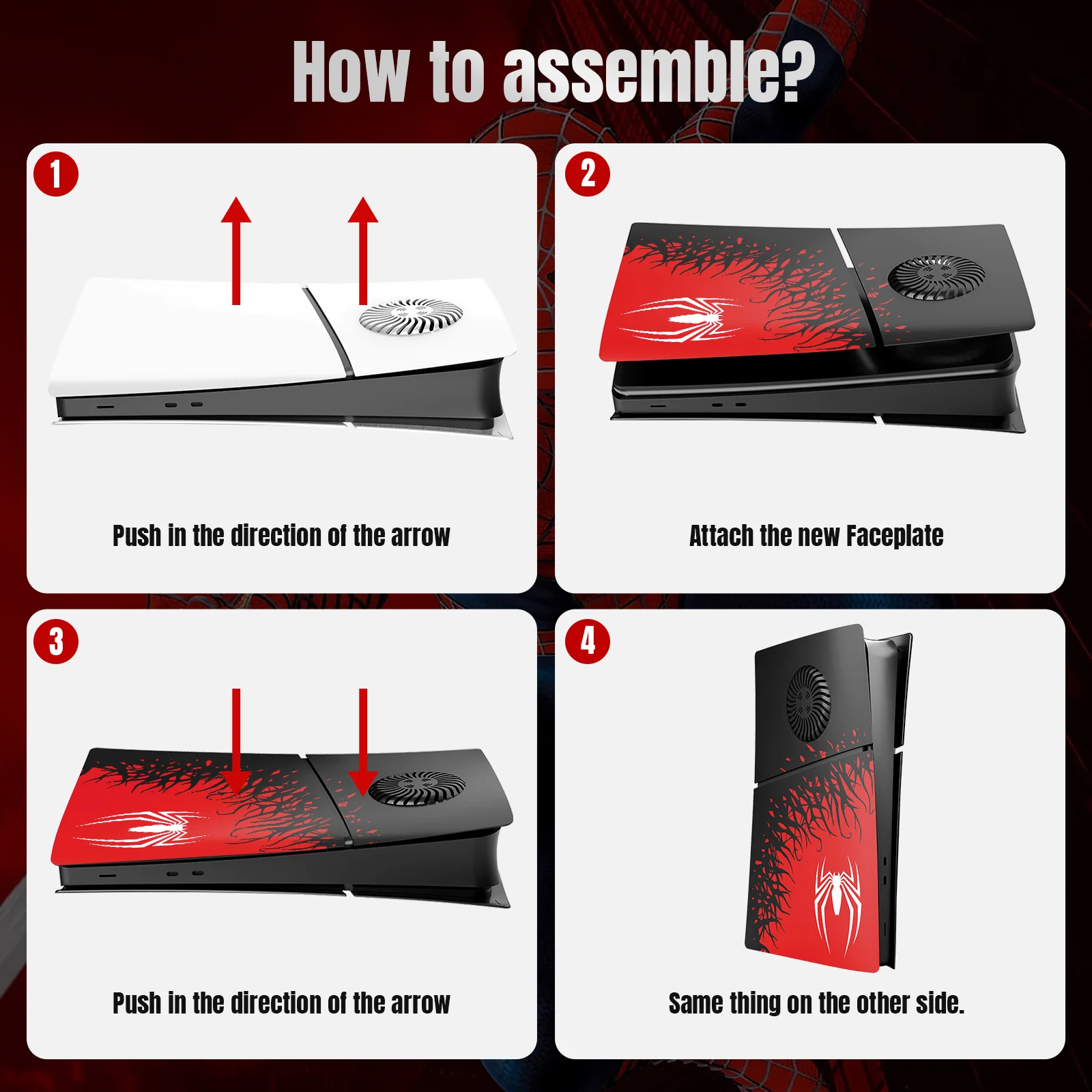 Faceplate Spider with Cooling Vents & RGB Light for PS5 Slim Replacement Face Plate Side Plates Shell Cover for PS5 Slim Digital