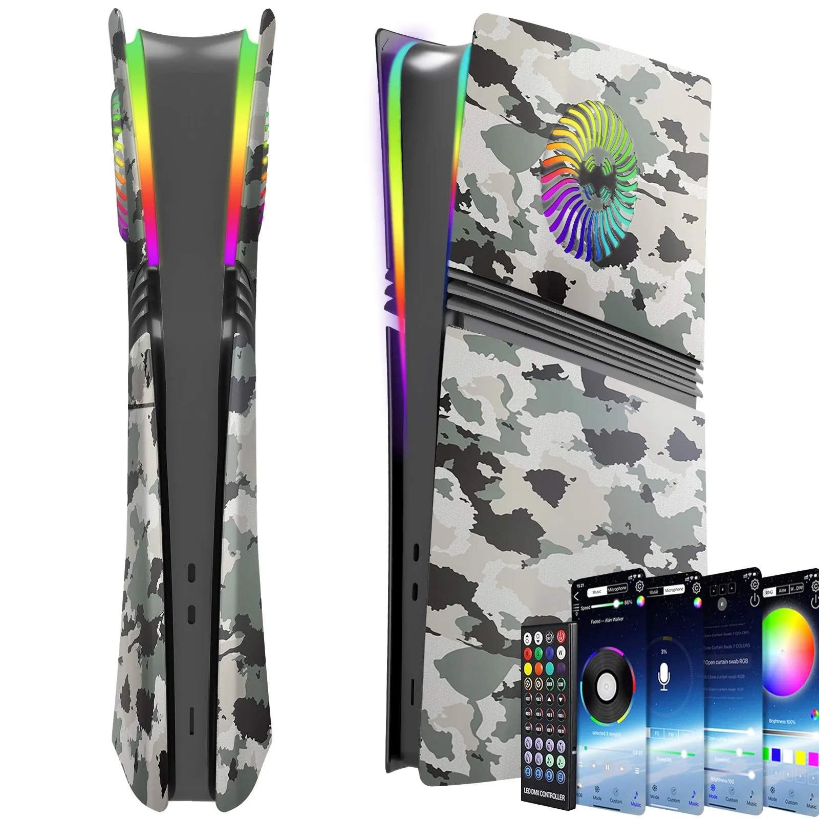 Faceplate with RGB Light Strip and Cooling Vents for PS5 Pro Digital 400+ Effects LED Light Ring Console Decoration Plate Cover